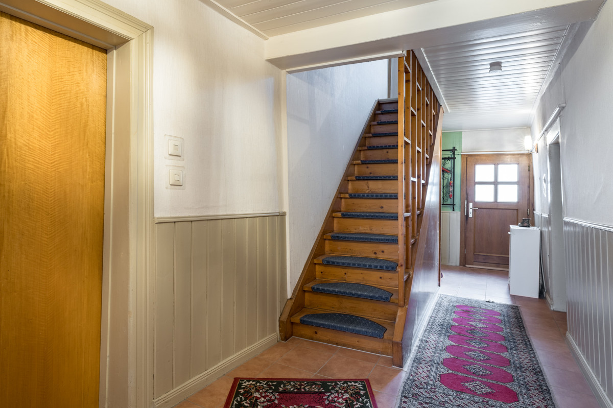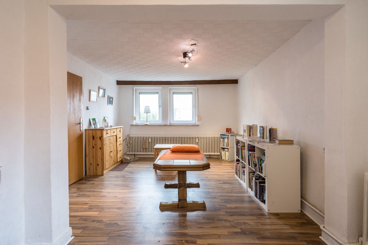 Durch den Vorgarten geht es über Treppenstufen zum überdachten Eingang in den Windfang und dann in die Diele, von der helle und angenehme Räume abgehen. Typisch für sein Baujahr ist auch die Ausführung des Fachwerkhauses.