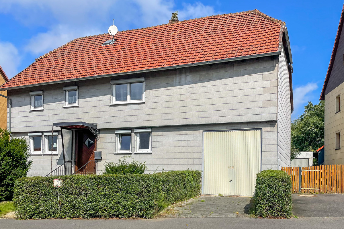 !!! PROVISIONSFREI zu kaufen!!! Einzug sofort nach Kaufpreiszahlung. Gemütliches Fachwerk-Einfamilienhaus mit Einliegerwohnung auf ca. 149 m² in Staufenberg-Landwehrhagen nahe Kassel: mitsamt vier Stallungen auf ca. 60 m², Großraumgarage, weiterer Garage sowie Außenstellplätzen! In Zukunft bietet Ihnen das 1890 erbaute und 2012 sowie 2005 weitreichend modernisierte Haus mit insgesamt 6 Zimmern und bauzeittypischem Grundriss viele Möglichkeiten! Sie können die 2-Zimmer-Erdgeschosswohnung (ca. 72 m²) und die 4-Zimmer-Obergeschosswohnung (ca. 77 m²) vermieten, oder selbst einziehen. Die Immobilie ist sofort frei. Das verschindelte Fachwerkhaus mit Krüppelwalmdach liegt auf einem 621-m²-Grundstück an einer Wohn- und Geschäftsstraße in schöner Ortsrandlage sowie kurzer Gehweite zu der sehr guten Infrastruktur des Ortes. In der Großraumgarage im Haus ist Platz für ein Wohnmobil oder einen Wohnwagen!