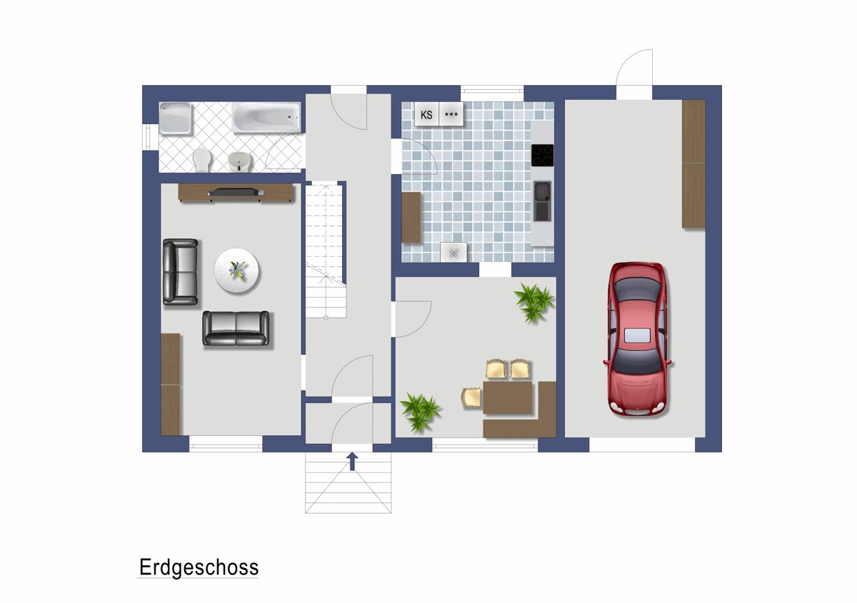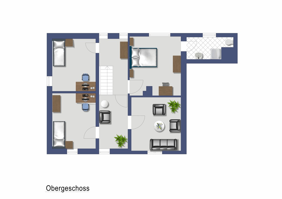 •Bei Nutzung als Einfamilienhaus im Obergeschoss beispielsweise Elternschlafzimmer mit Ankleide und Arbeitszimmer sowie 1 Kinderzimmer möglich