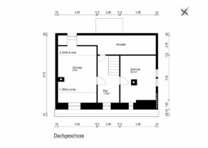 Ein pures Highlight ist einer der Dachgeschossräume. Zum Dachraum hin offen, bietet dieser auf zwei Seiten je eine durch eine Leiter erreichbare obere Ebene (zusätzlich gewonnene Fläche: 8 bis 10 m² – nutzbar als Hochbett, Stauraum oder Rückzugsort). Die Kombination aus Sprossen-Gaubenfenstern sowie Dachfenstern sorgt in dem Raum für besondere Lichtstimmungen.