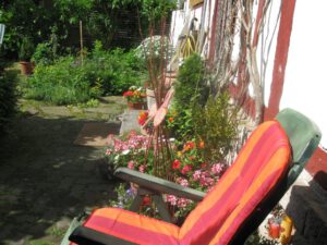 Auf der Sitzecke hinter dem Haus genießen Sie die Nachmittags- und Abendsonne. In den Erdgeschoss- und den Obergeschoss-Küchenraum können Sie Ihre Wunsch-Einbauküche einbauen.