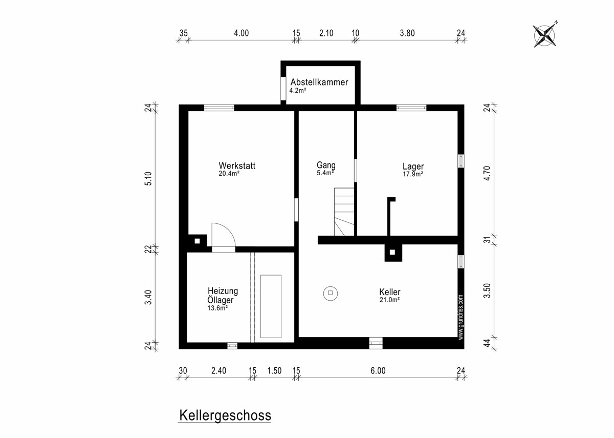Im Obergeschoss ist der Anschluss eines Kaminofens möglich.